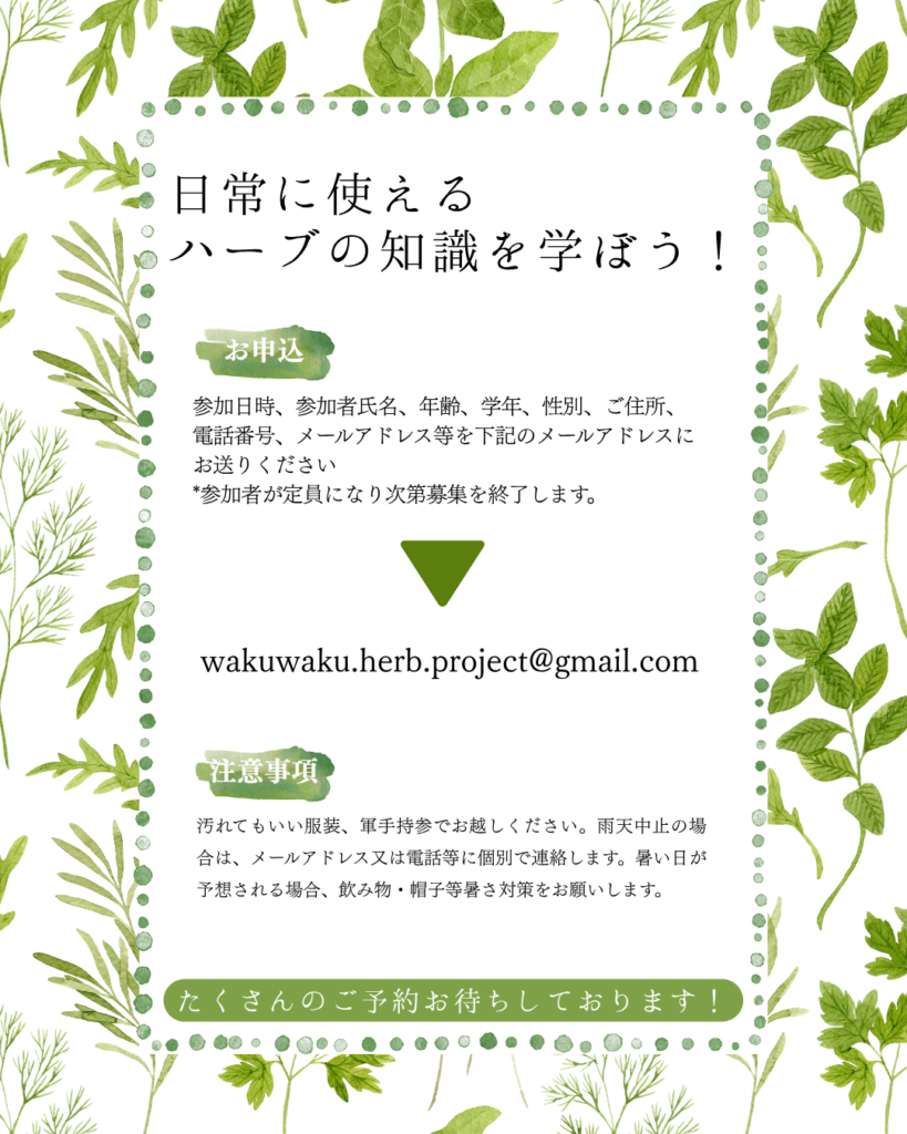 暮らしに役立つハーブの楽しみ方を学びませんか?